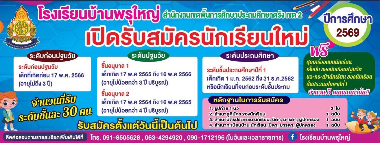 ยินดีต้อนรับเข้าสู่เว็บไซต์ โรงเรียนบ้านพรุใหญ่ค่ะ...